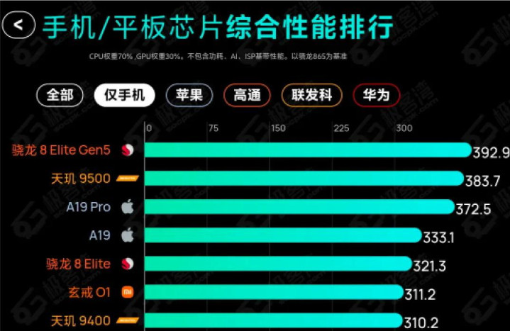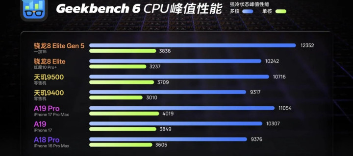 不过,GPU性能和光追性能都还是天玑9500更强一点,而骁龙8 Elite Gen 5的GPU性能则介于9500和A19Pro之间。